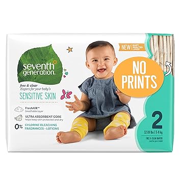 Seventh Generation Baby Diapers For Sensitive Skin Plain Unprinted Size 2 180 Count Packaging May Vary