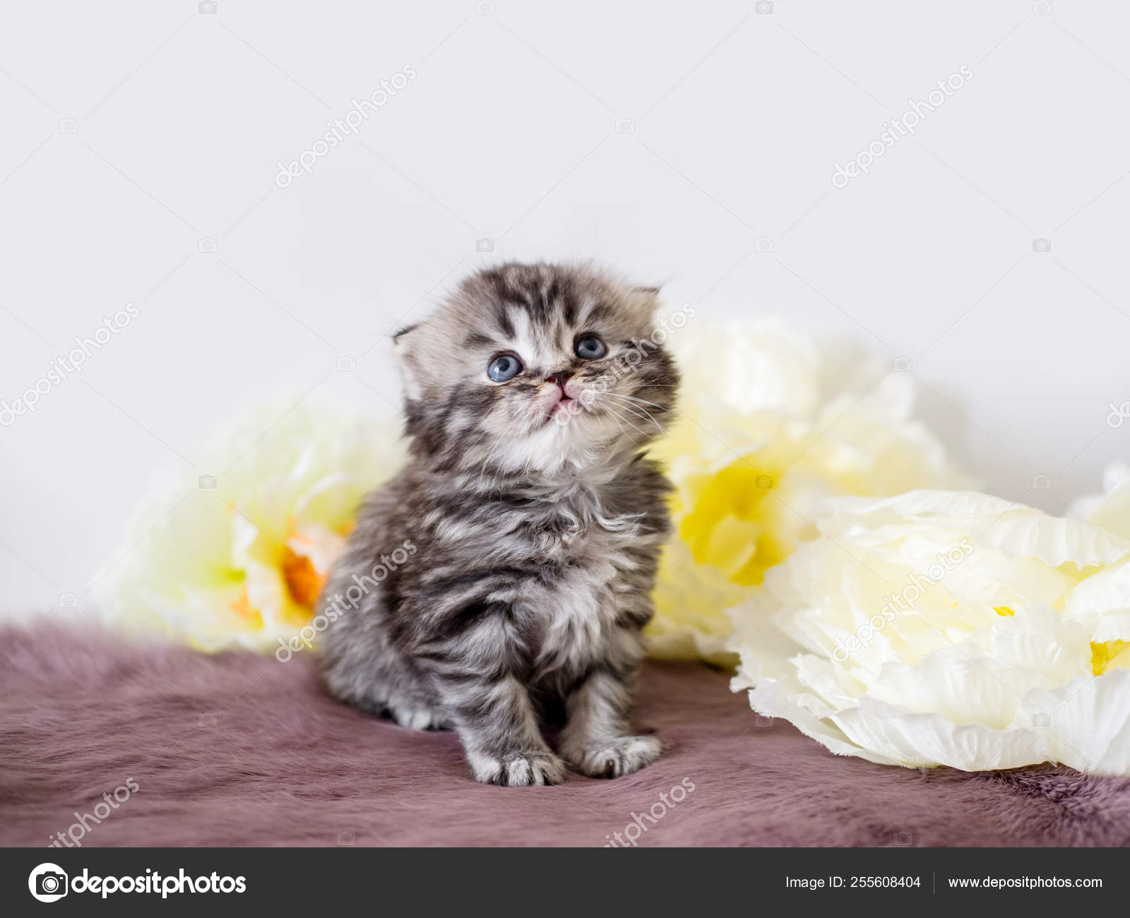 Beautiful Newborn Kitten With Blue Eyes Scotsman Stock