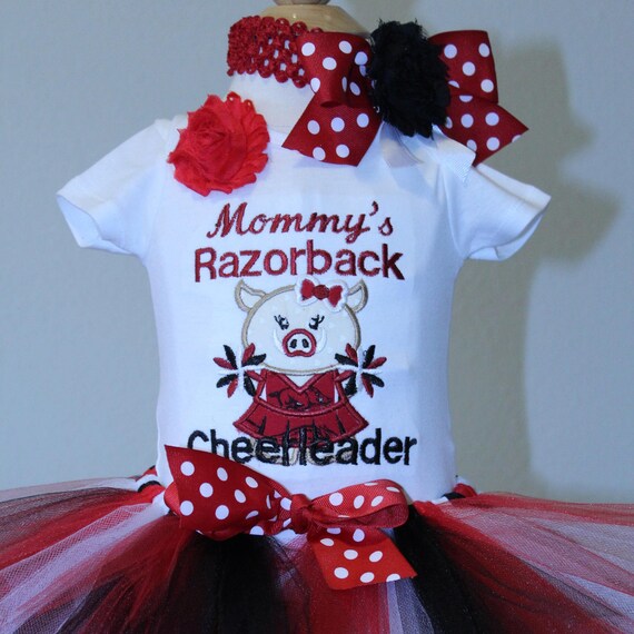 Arkansas Razorback Cheerleader Baby Girl Outfit Razorbacks Pig Bodysuit Baby Shower Gift Baby Girl Gift Girls Tshirt Red Black Tutu