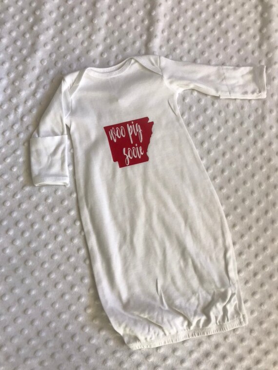 Baby Girl Or Baby Boy Arkansas Razorback Gown Red Woo Pig Sooie Baby Girl Or Baby Boy Gift Newborn Infant Gown