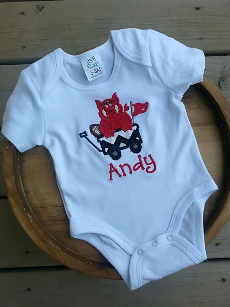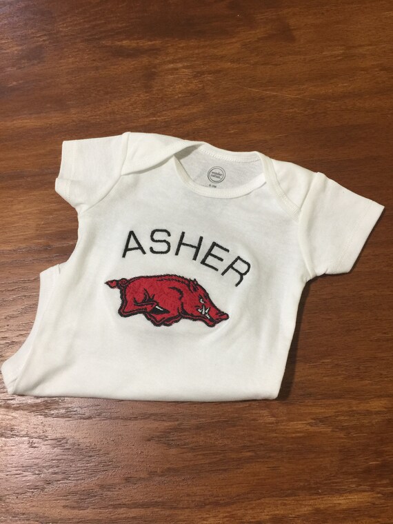 Licensed Arkansas Razorback Onesie Razorback Baby Clothing Personalized Hog Baby Bodysuit