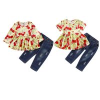 Baby Girl Floral Set Infant Girl Long Sleeve Ruffle Little Floral Tops Baby Infant Girl Designer Clothes Girls Solid Color Pocket Jeans