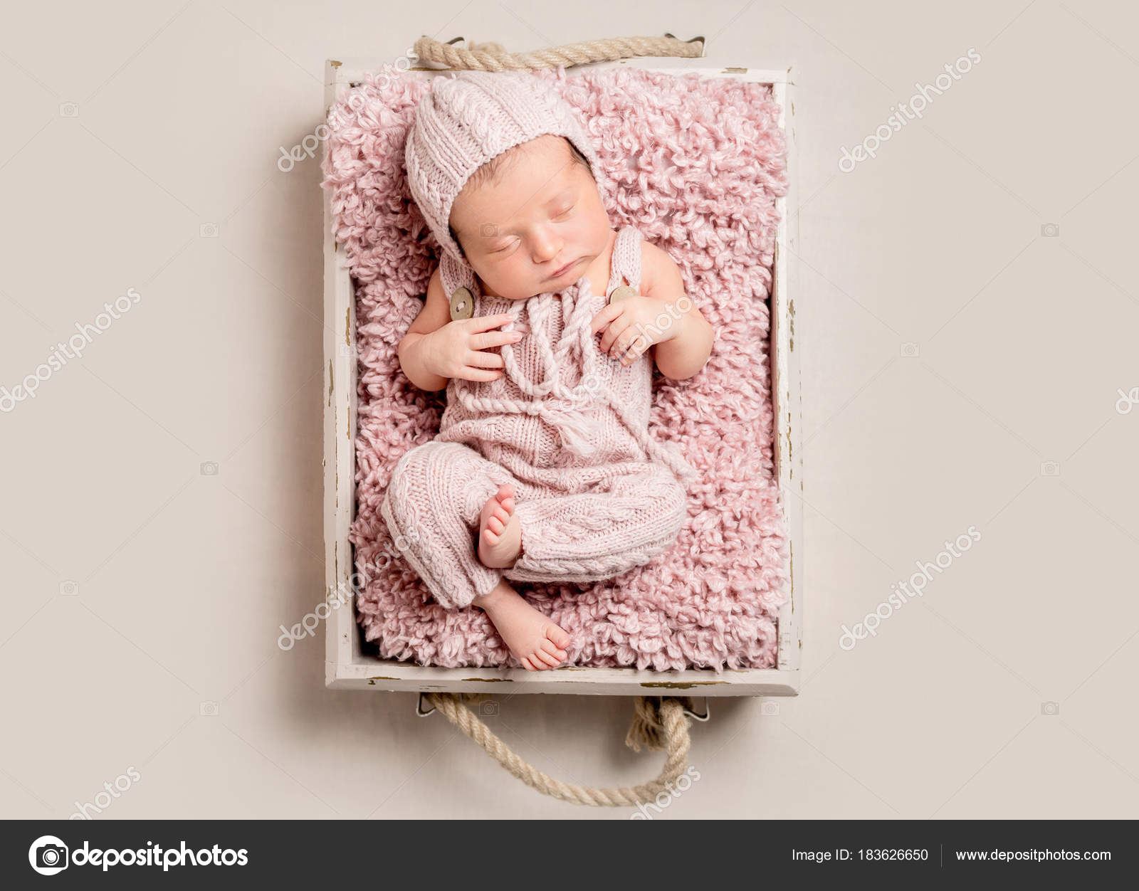 Sweet Newborn Baby Sleeping In Children Nest