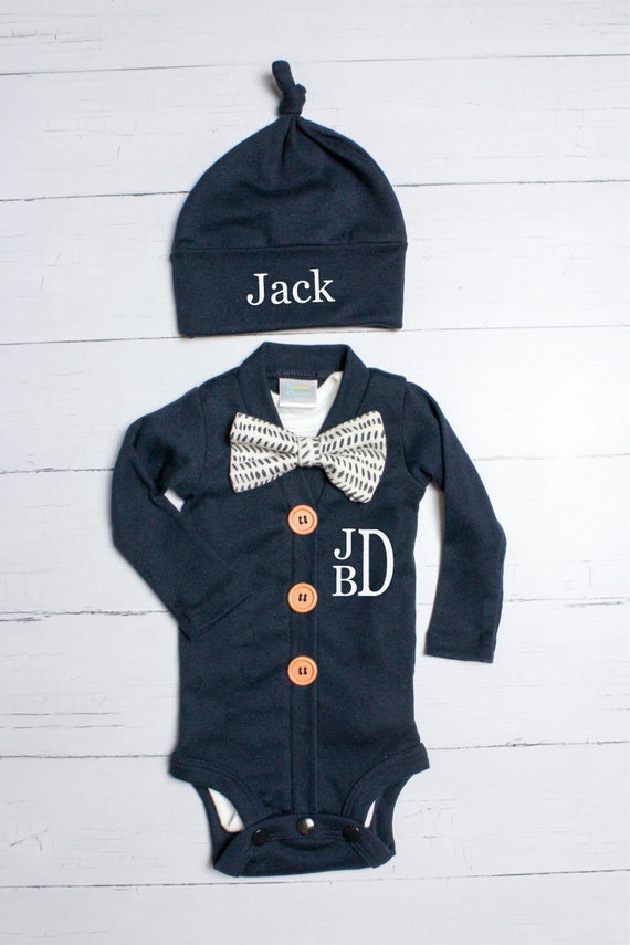 Navy Monogrammed Baby Boy Clothes Newborn Boy Going Home Outfit Coming Home Outfit Blue Name Hat Personalized Cardigan Preppy