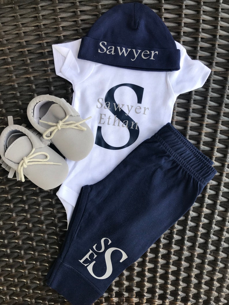 Personalized Baby Boy Coming Home Outfit Boys Monogrammed