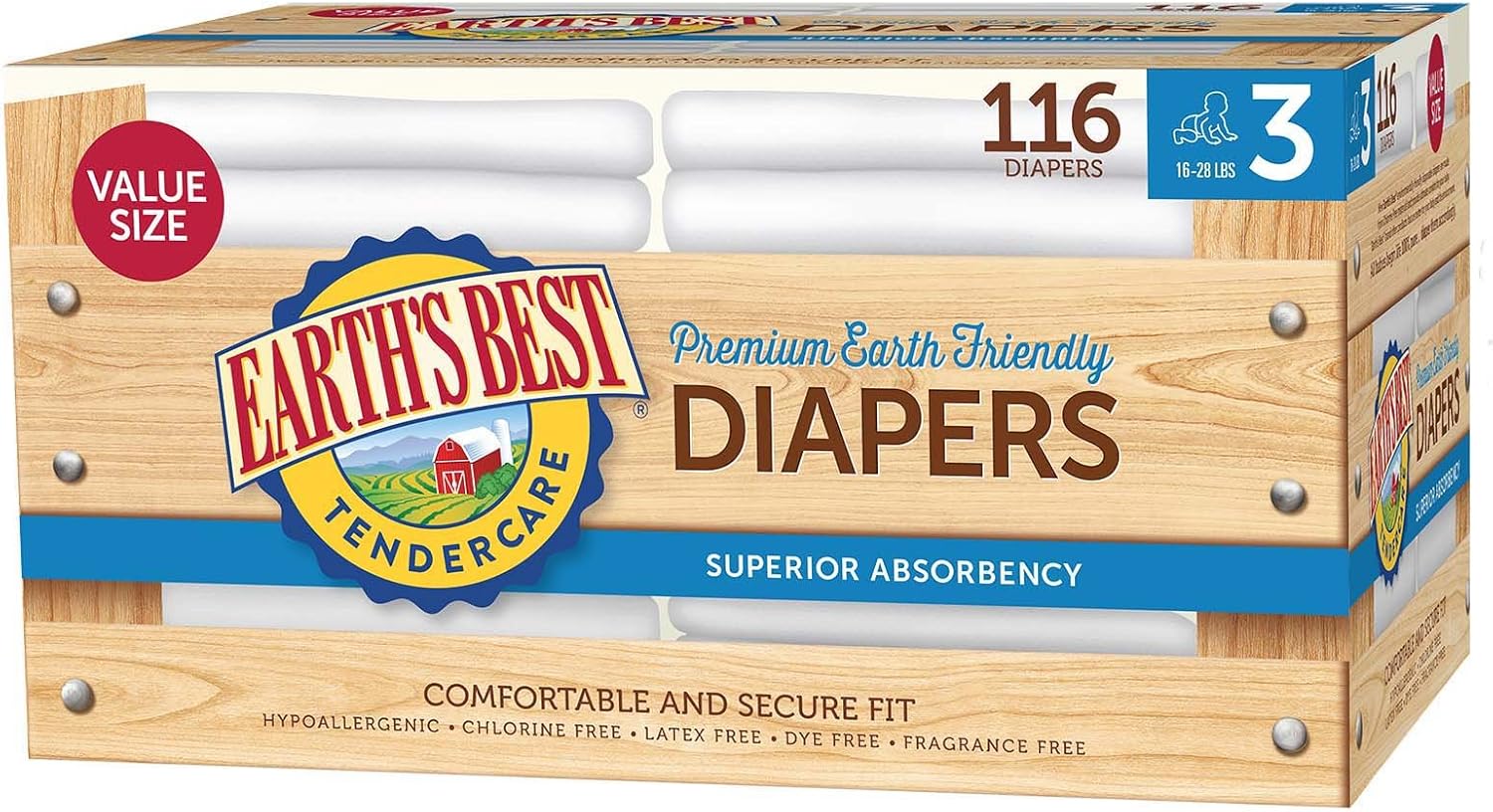 Earth S Best Tendercare Chlorine Free Diapers Fragrance Free Size 3 Weight 16 28 Lbs 116 Count