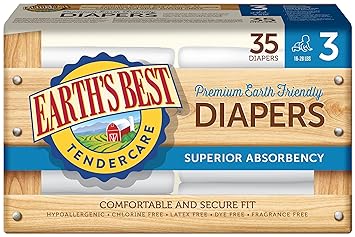 Earth S Best Tendercare Chlorine Free Disposable Baby Diapers Size 3 16 28 Lbs 35 Count