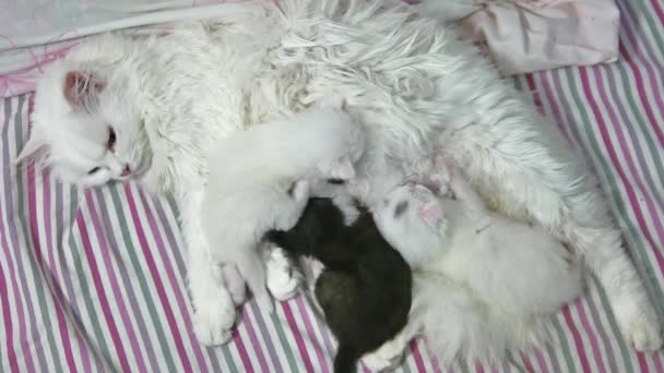Mother Fluffy Cat Pregnant Give Birth And Newborn Baby Kittens Drinking Milk From Their Mom Breast The Cat Gives Birth To Lifestyle The Concept Stock Video Download Video Clip Now