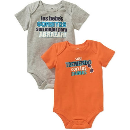 Newborn Baby Boy Spanish Attitude Short Sleeve Bodysuit 2 Pack