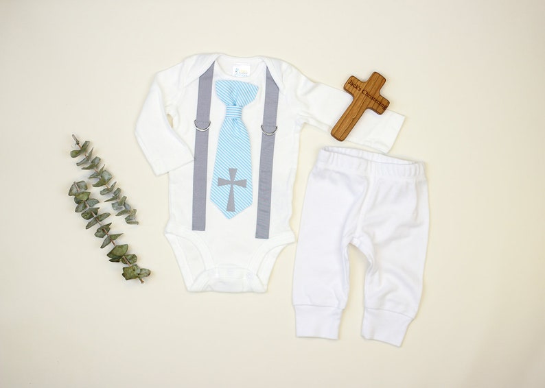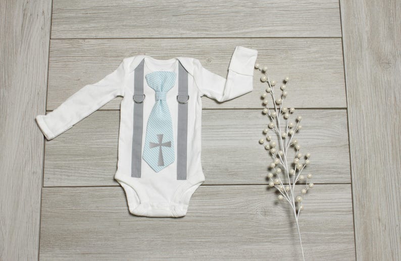 Baby Boy Baptism Outfit After Baptism Outfit Church Clothes Infant Christening Outfit Cross Tie Blue Tie Baptism Bodysuit Newborn