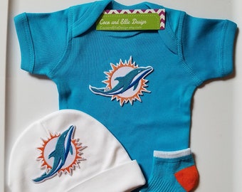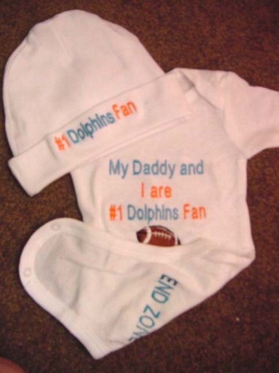 Miami Dolphins Fan Football Baby Infant Newborn Creeper Onesie Hat Set Personalized Embroidered