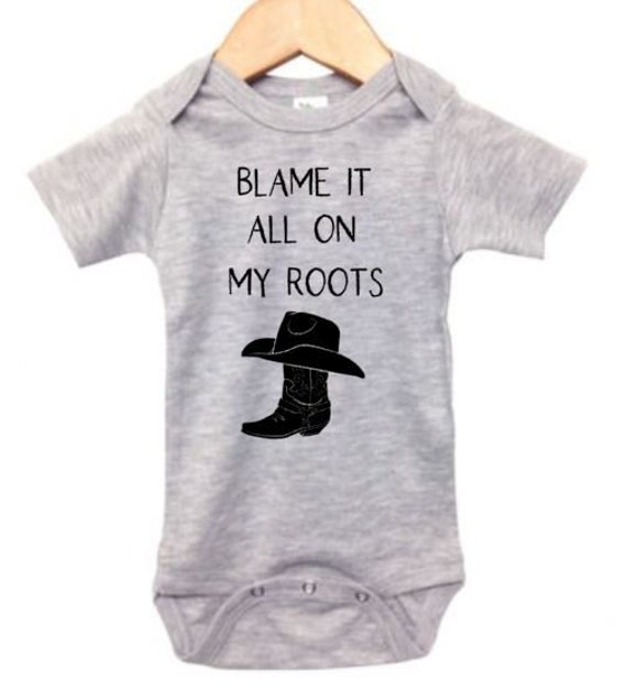 Blame It All On My Roots Baby Onesie Cute Newborn Outfit Country Apparel For Babies Country Music Onesie Western Baby Clothes