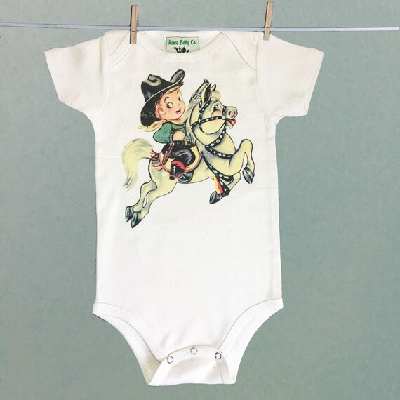 Western Cowboy Cutie Buckaroo Baby One Piece Bodysuit Infant Outfit With Rider And Horse Organic Short And Long Sleeve Versions Available