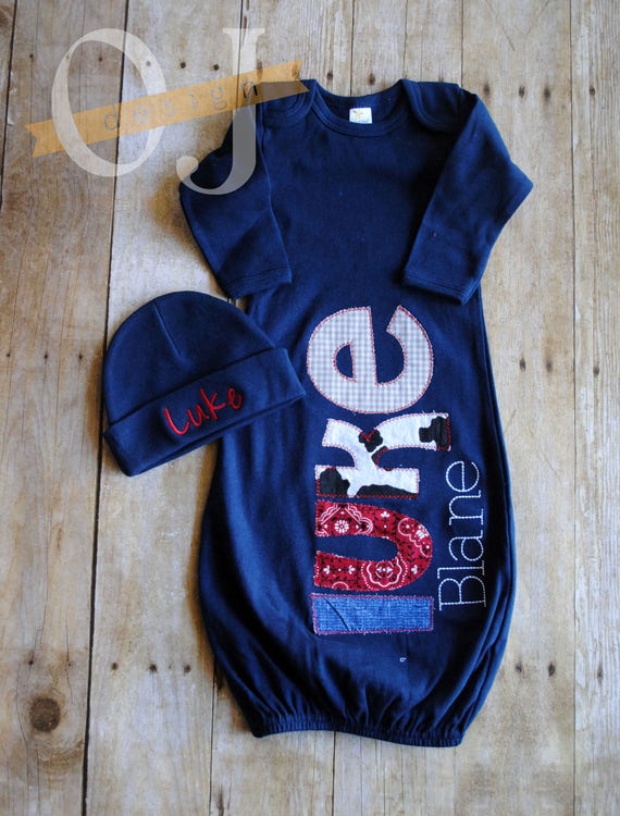 Personalized Baby Boy Gown And Hat Newborn Hospital Set Infant Gown Newborn Hat Baby Shower Western Cowboy Baby