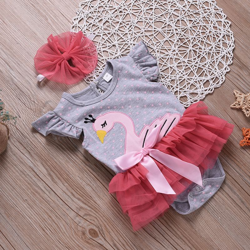 2019 Newborn Baby Clothes Summer Toddler Infant Girls Clothes Flamingo Romper Jumpsuit Hairbands Outfits Boutique Baby Clothing 0901988