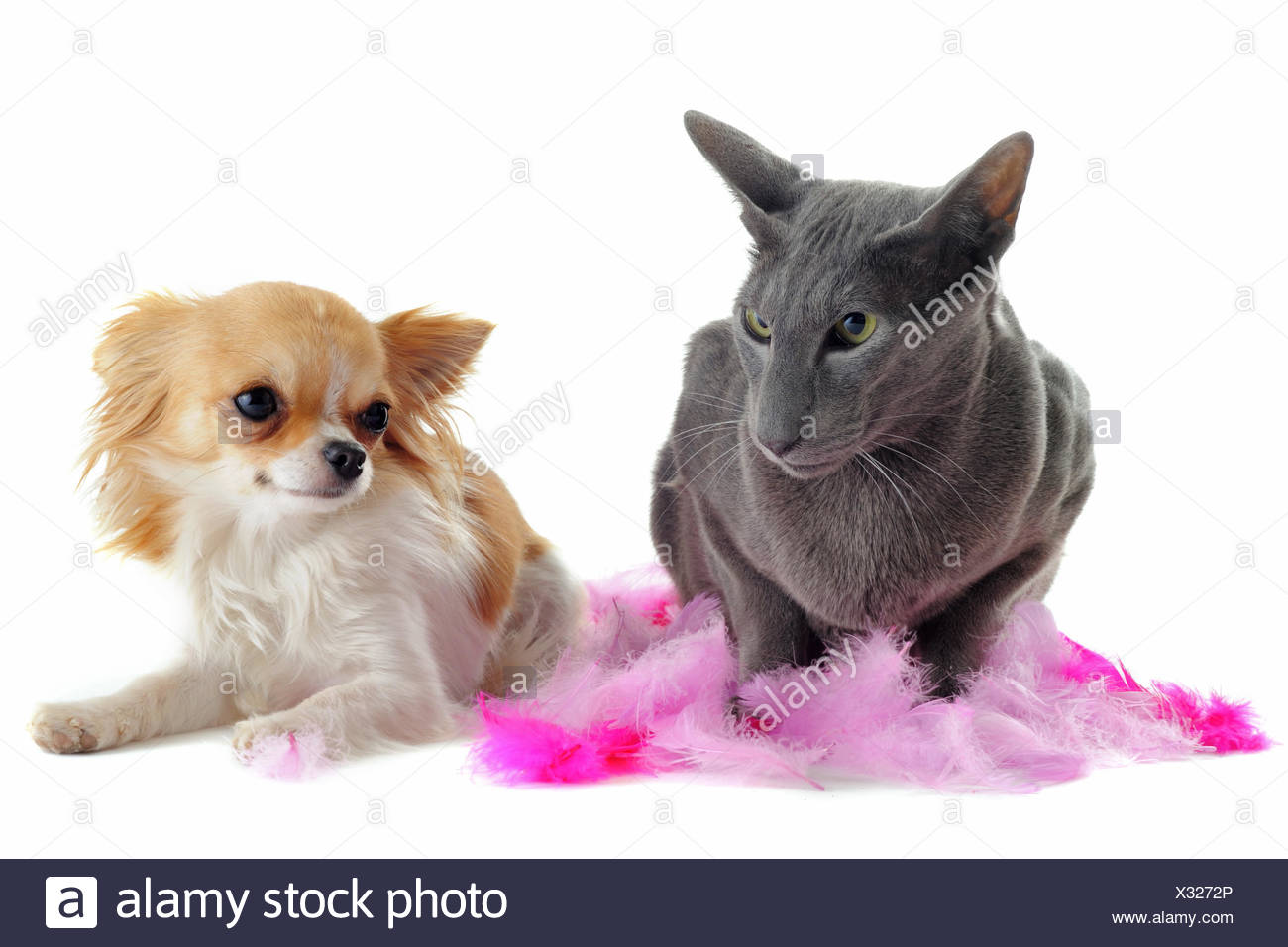 Siamese And Oriental Shorthair Kitten On White Stock Photo
