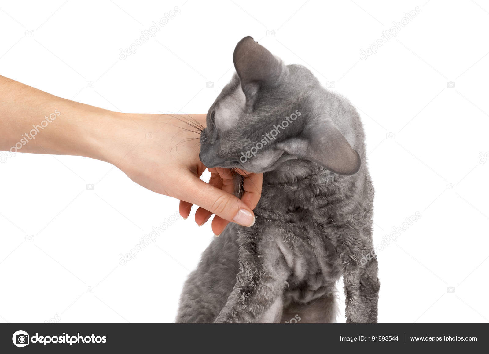 Oriental Shorthair Cat Sitting And Biting Hand Gray Animal