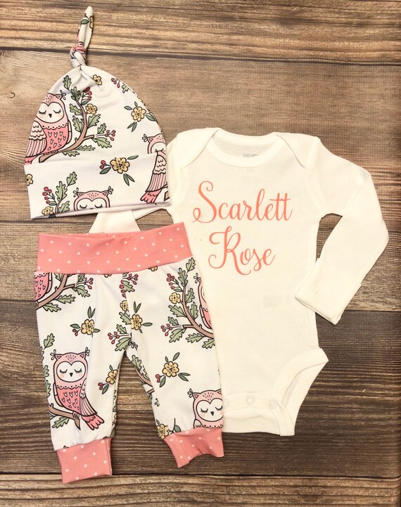 Coral Owl Girl Coming Home Outfit Going Home Outfit Newborn Outfit Newborn Girl Outfit Baby Hospital Outfit Baby Name Outfit Newborn