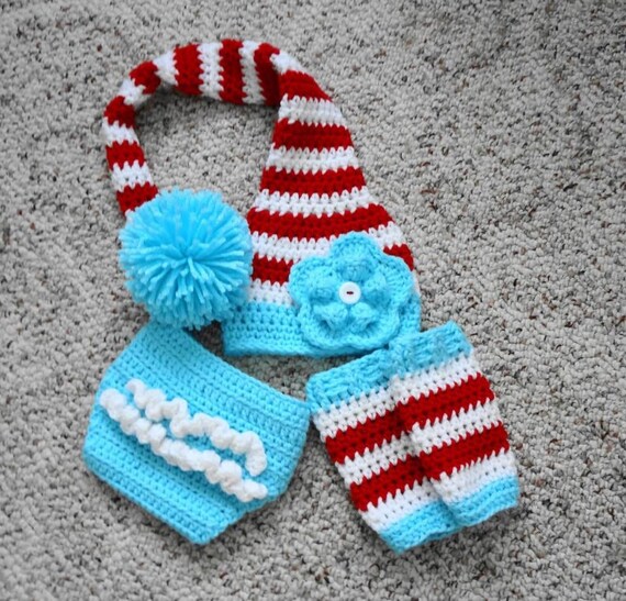 Baby Set Dr Seuss Stocking Hat And Diaper Cover Fits Newborn 1 3 3 6 Months