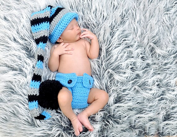 Baby Set Long Tail Stocking Hat And Matching Diaper Cover Football Carolina Panthers Fits 3 6 6 9 9 12 Months
