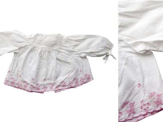 Vintage Newborn Girl Blouse Baby White Pink Shirt Duck Printed T Shirt 1 Month 70s Kids Clothing