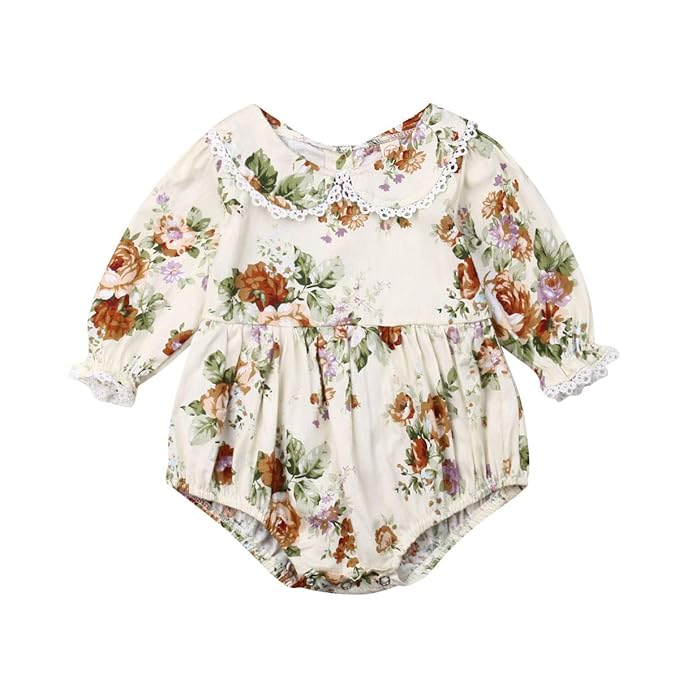 Vintage Flower Newborn Infant Baby Girls Clothing Long Sleeve Rompers Jumpsuit Autumn New Baby Girl Clothes