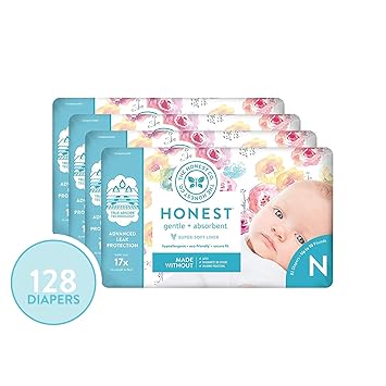 The Honest Company Diapers Newborn Size 0 Rose Blossom Print Trueabsorb Technology Plant Derived Materials Hypoallergenic 32 Count Pack