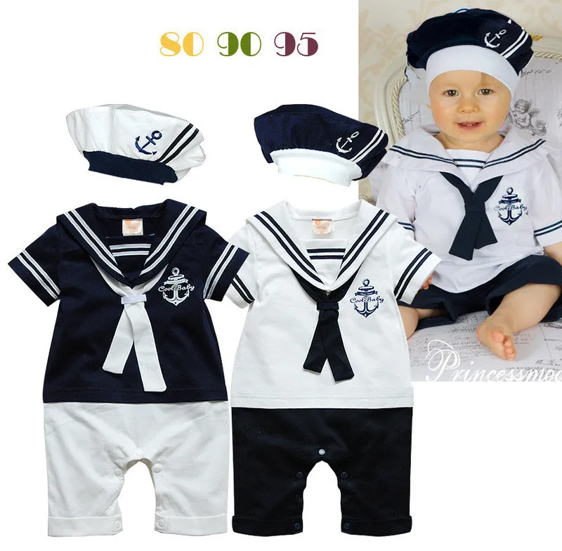 White Navy Sailor Uniforms Summer Newborn Baby Rompers Baby Boys Clothes Short Sleeve Clothing One Pieces Jumpsuit In Rompers From Mother Kids
