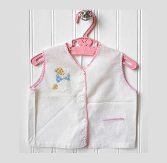 1930 S White Unisex Baby Shirt Puppy Dog Applique Size Newborn Reborn Doll Clothes