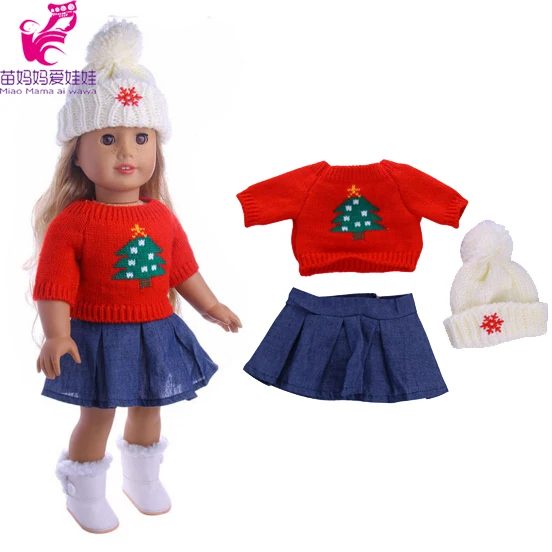 Us 5 23 11 Off 3 In 1 Red Sweater Cap Jeans Dress For Newborn Baby Doll Clothes Wear Fit 18 Inch Girl Doll Dress Best Birthday Gift In Dolls