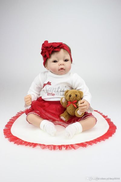 Full Silicone Reborn Baby Doll Boy With Rooted Hair Clothes Newborn Baby Doll Boneca 22in 55cm Lifelike Cute Girl Gifts Toy Red Bear From Walmart