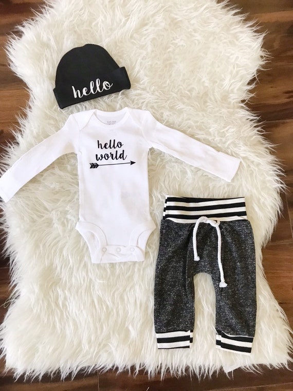 Baby Boy Clothes Newborn Boy Coming Home Outfit Hello World Personalized Boy Clothing Newborn Boy Take Home Outfit Twin Boy Baby Shower Gift