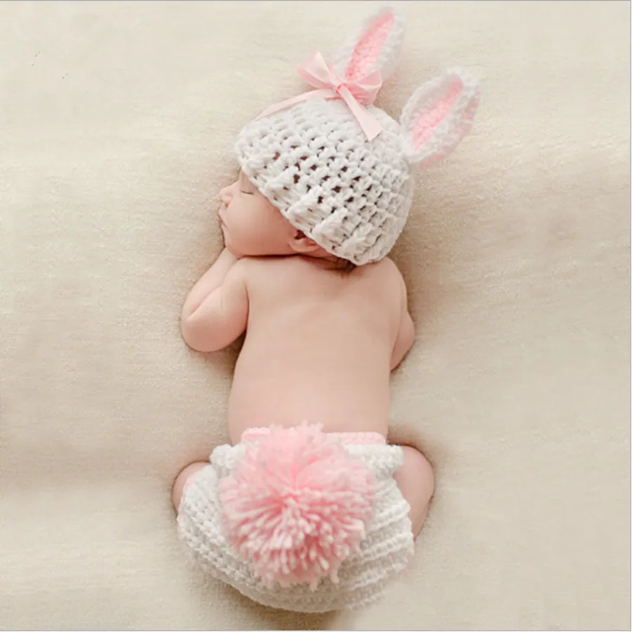 2019 Adorable White Easter Bunny Newborn Outfits Handmade Knit Crochet Baby Boy Girl Rabbit Animal Hat And Diaper Cover Set Infant Photo Prop From