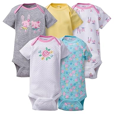Gerber Clothing Baby Girls 5 Pack Variety Onesies Undershirt Bodysuits Dancing Bunny Newborn