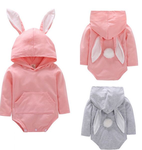 2019 Rabbit Easter Baby Clothes Infant Bunny Ear Hooded Romper Newborn Sweatshirts Pockets Long Sleeve Jumpsuit Newborn Easter Outfits From