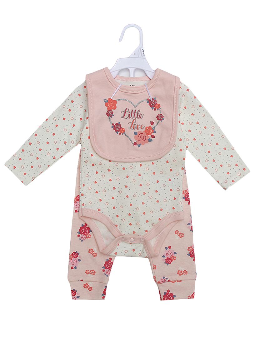 3 Piece Newborn Baby Girl Cotton Clothes Outfits Set Love Heart Bodysuit Flower Pants Floral Love Heart Bib