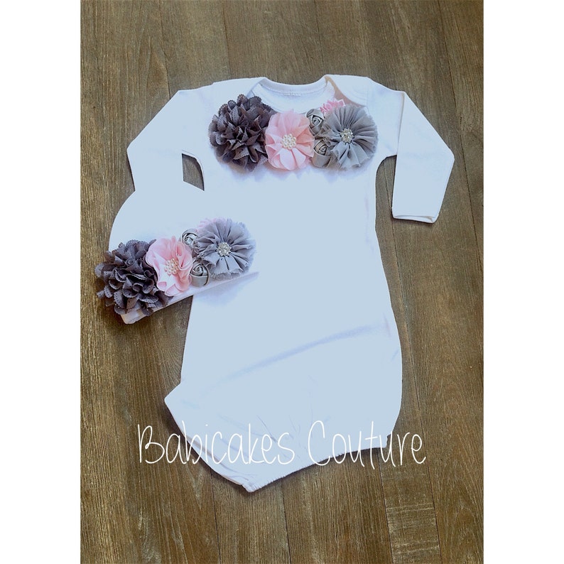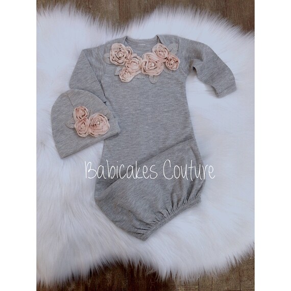 Newborn Girl Take Home Outfit Gray Baby Gown Blush And Gray Baby Outfit Coming Home Outfit Baby Girl Clothes Fancy Baby Outfit Layette