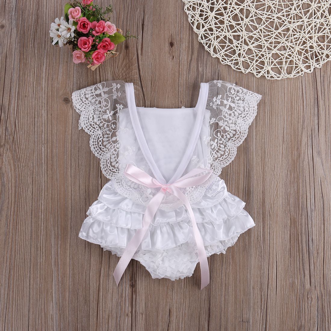 Cute Newborn Toddler Baby Girl Clothing Flower Bow Cute Clothes Lace Floral Bodysuit Outfits Summer 0 24m
