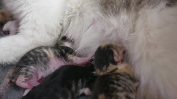 Funny Fold Cats Cat And Kittens Cat Feeds Newborn Kittens The Cat Gives Birth Lifestyle Parturition To Kittens Indoors Kitten Playing Sleeps