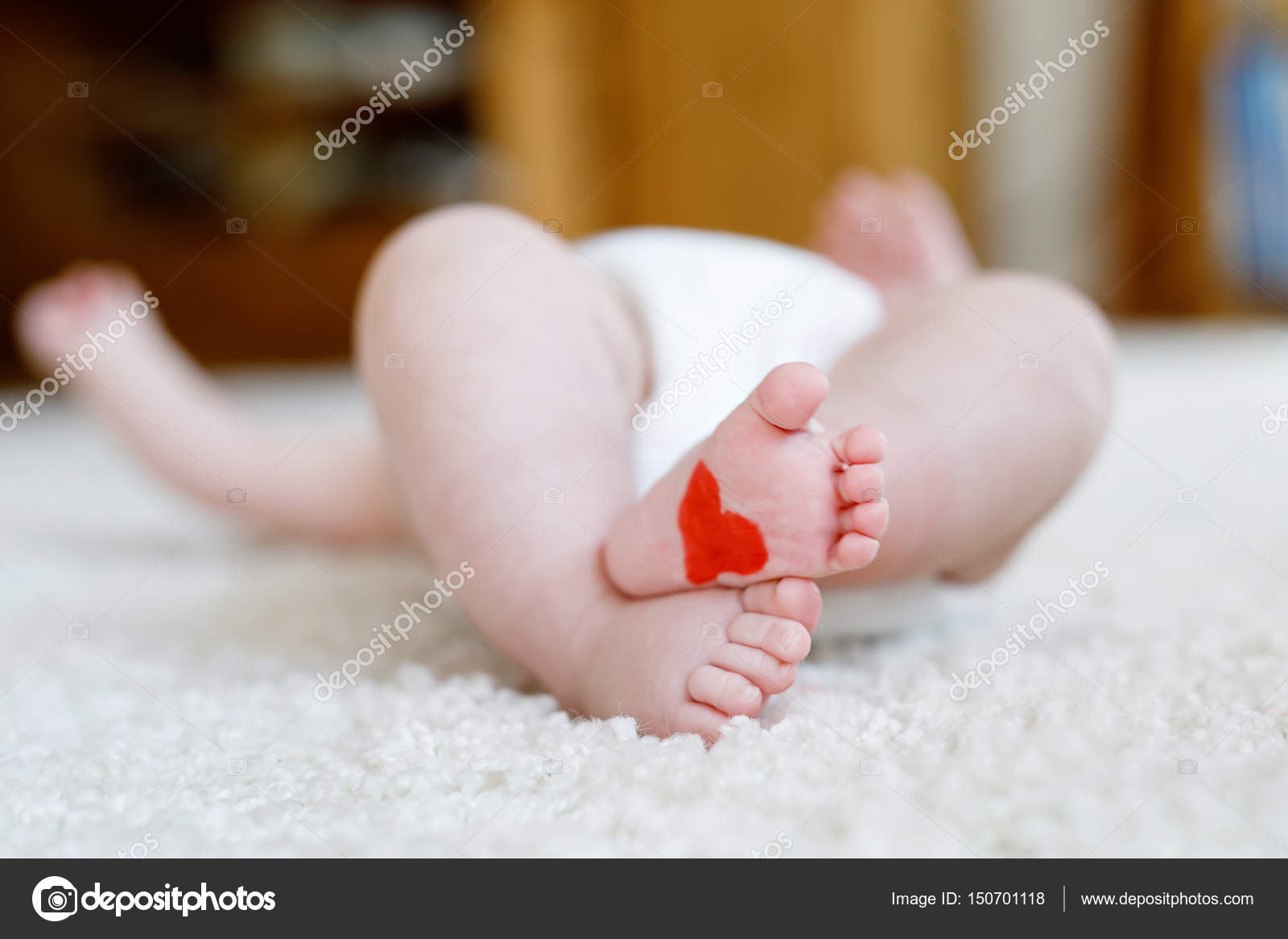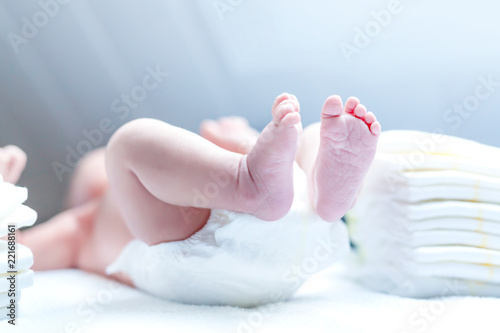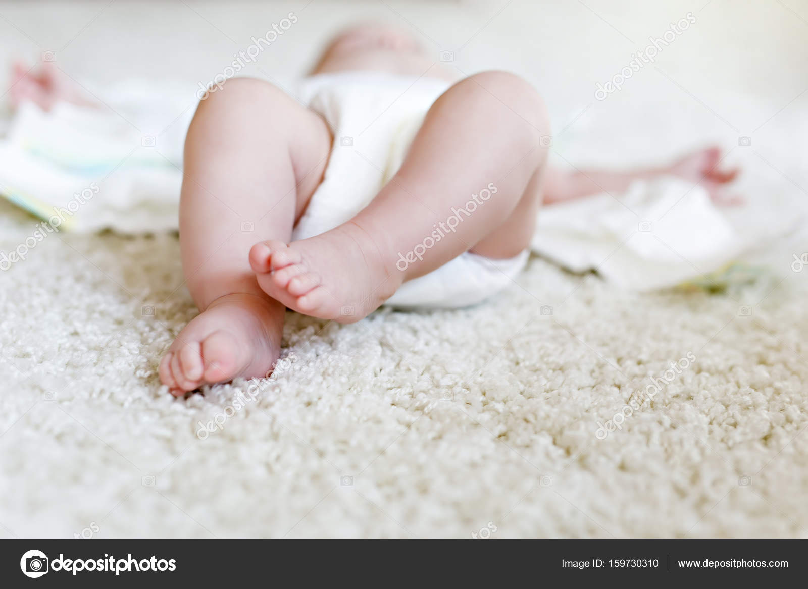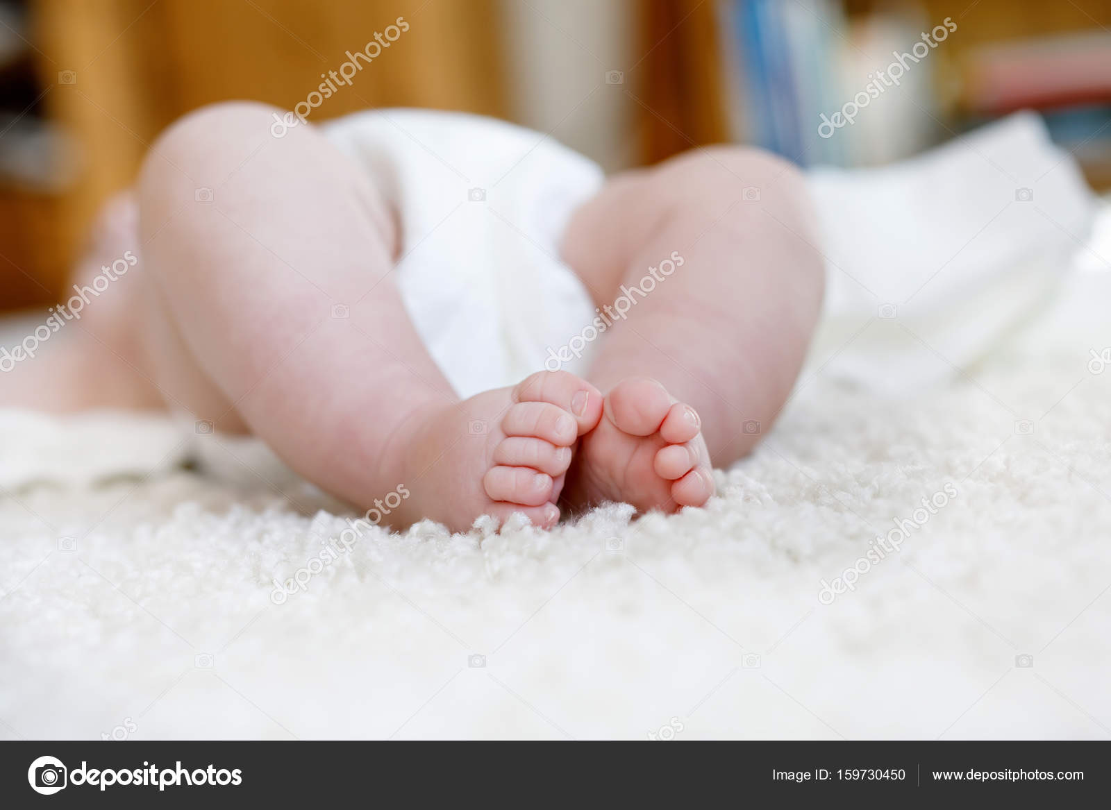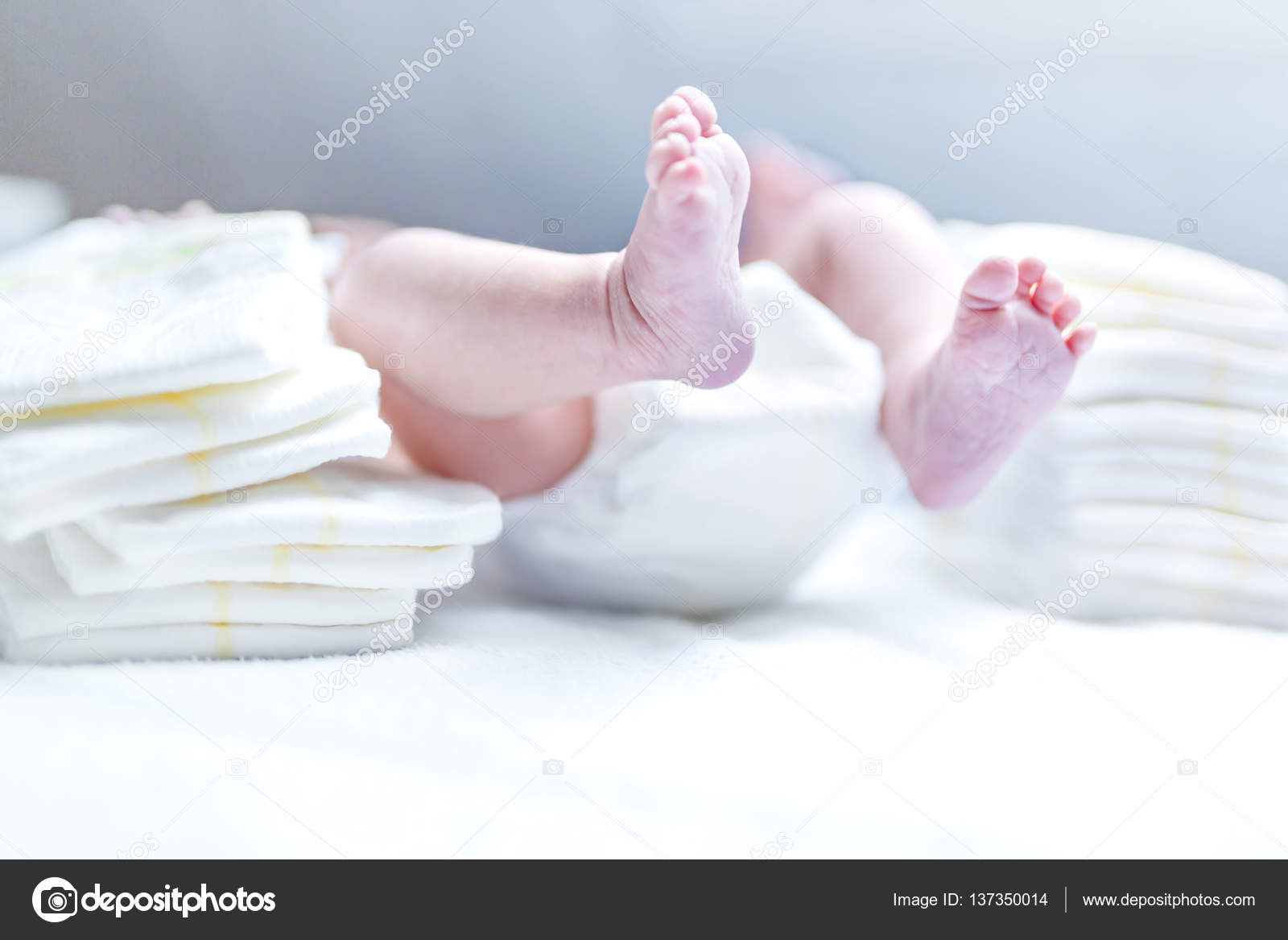 Feet And Legs Of Newborn Baby With Diaper Stock Photo
