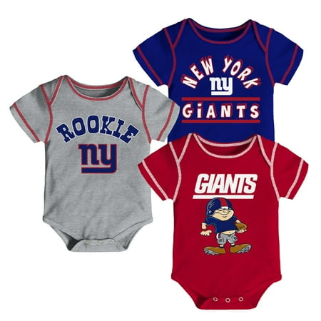 Newborn Infant Royal Red Gray New York Giants 3 Pack Bodysuit Set