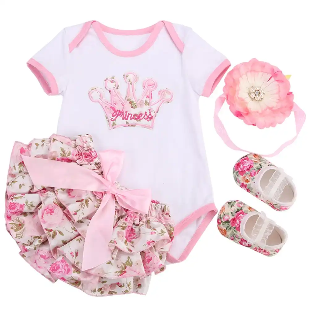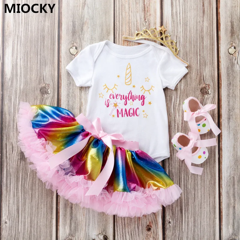 Princess Baby Clothing Girl Set Newborn Unicorn Girls Pants Shoes Headband 4pcs Set Body Bebe Fille Kids Clothes Baby Costume