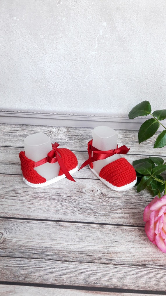 Trendy Baby Booties Crocheted Red Sandals Newborn Baby Shoes Of Cotton First Clothing Girl Gift Newborn Girl Knit Baby Clothes