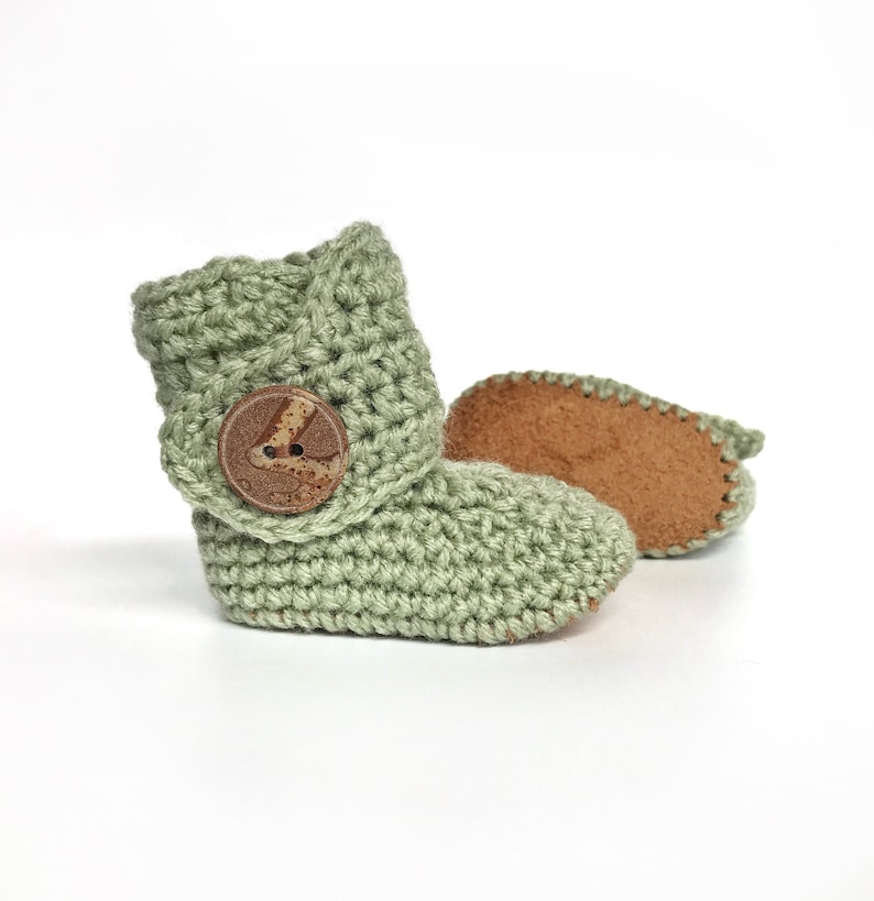 Newborn Baby Shoes Unisex Infant Boots Sage Baby Outfit Tan Suede Crib Shoes Crochet Baby Booties Fall Baby Clothes Gender Reveal Gift