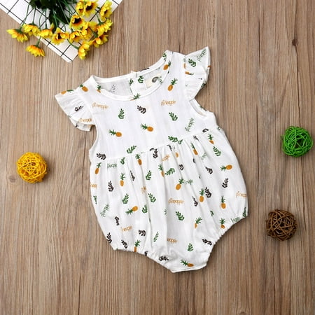 Newborn Baby Girl Romper Pineapple Print Fly Sleeve Bodysuit Jumpsuit Clothes