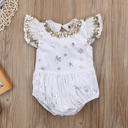 Newborn Baby Girls Romper Sleeveless Sequin Ruffle Jumpsuit Outfits Sunsuit One Pieces Summer Cotton Clothes