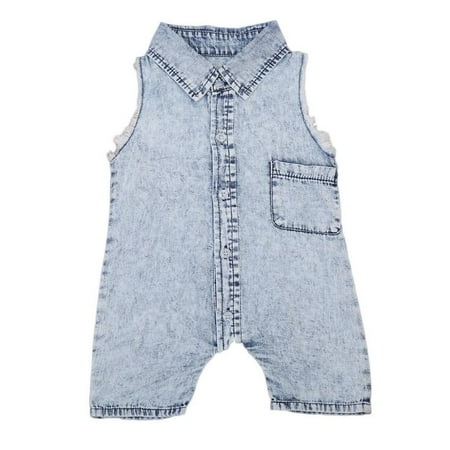 Newborn Infant Baby Boys Sleeveless Denim Turn Down Collar Romper Jumpsuit With Pocket