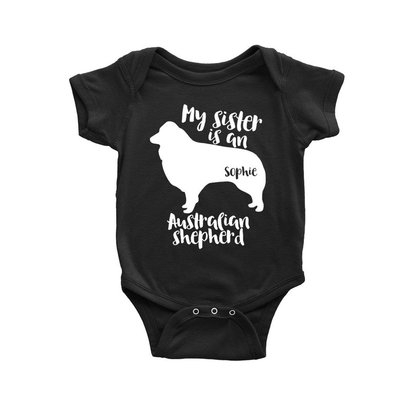 My Sister Is An Australian Shepherd Baby Bodysuit Baby Shirt Aussie Dog Baby Girl Gift Baby Boy Clothes Personalized Baby Shower Gift