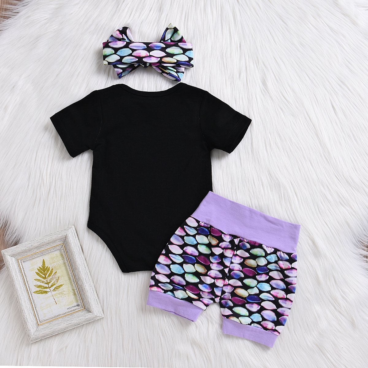 Aliven Newborn Baby Girl Happy 1st Father S Day Bodysuit Mermaid Shorts Headband Costume Outfits 3pcs Clothes Set