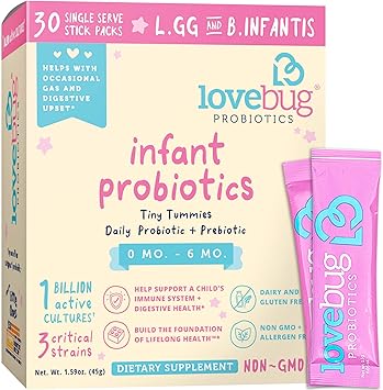 Lovebug Tiny Tummies Infant Probiotics Helps With Occasional Gas And Digestive Upset Reduce Crying Fussiness Support For Babies 0 6 Months Old
